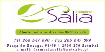Farmácia Sália Unipessoal, Lda Saúde / PortalRegional Ver todos... Detalhes do contacto Praça do Bocage, 98/99Setúbal,2900-276 - SETÚBAL 265 547 890 farmaciasalia@netcabo.pt Facebook Twitter Google+